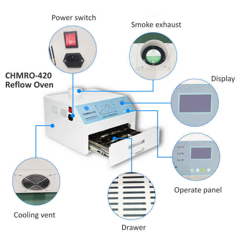 Lò nung chảy lại khí nóng + Hồng ngoại 2500w CHMRO-420 300*300mm BGA SMD SMT Trạm sửa chữa Nung nóng 220v